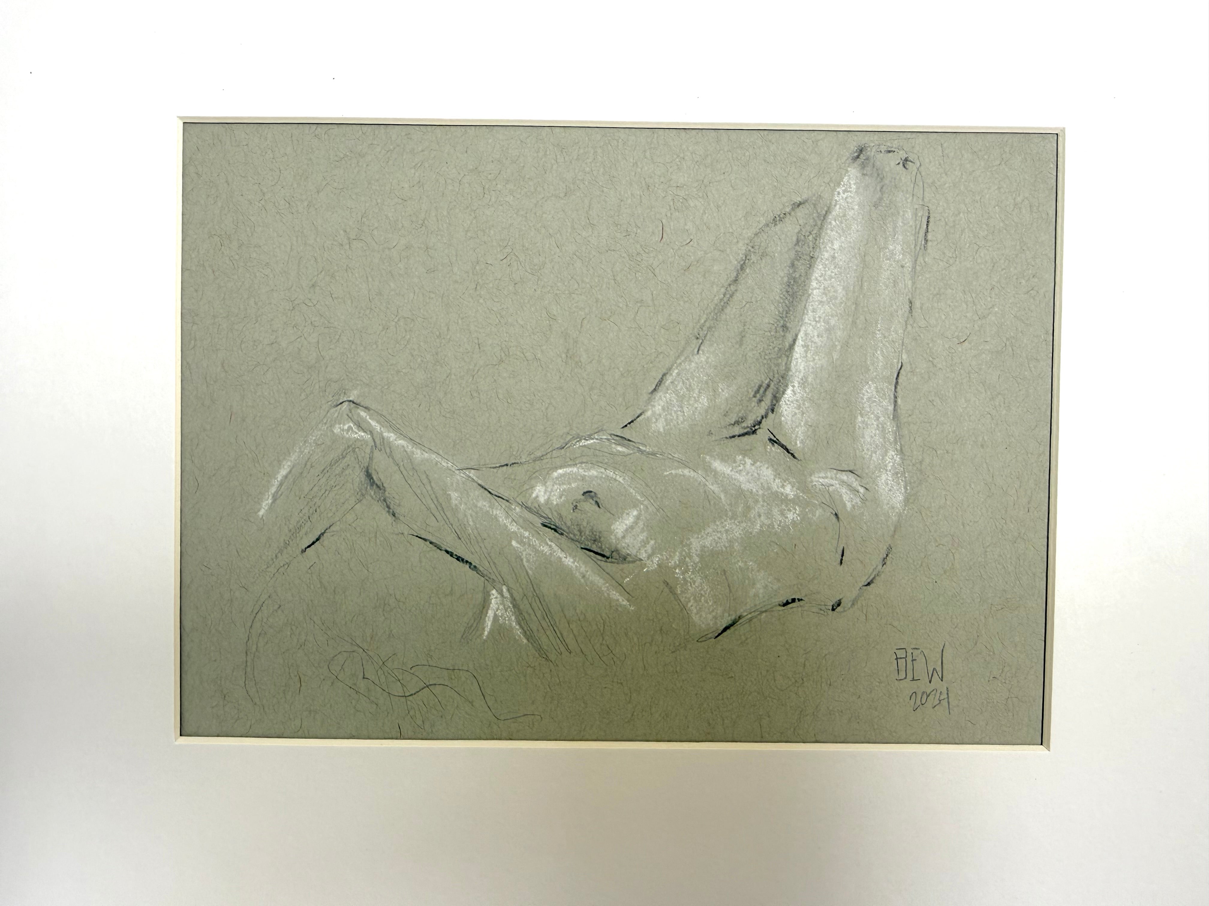 Nude Lying Down, charcoal and white pencil on gray paper